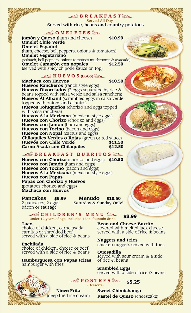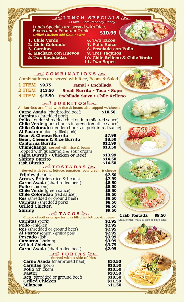 Our menu boasts a delightful array of options, from mouthwatering tacos and chimichangas to flavorful refried beans and freshly made salsas. Guests rave about the generous portion sizes that offer great value, ensuring you leave satisfied. For those seeking a refreshing drink, our signature margaritas have received high praise from customers.