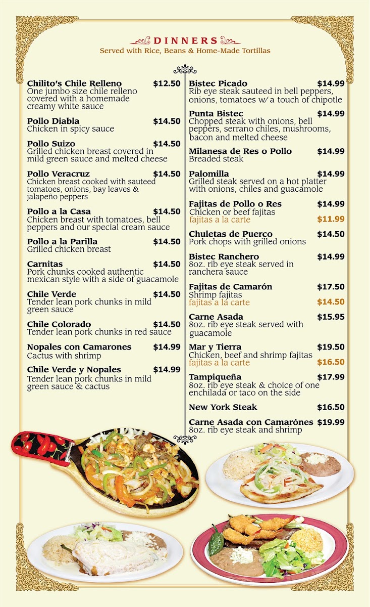 Not only is the food a highlight, but the attentive staff is dedicated to enhancing your dining experience with excellent recommendations. Whether you dine indoors or on our lovely outdoor patio, Chilitos promises a culinary adventure that will keep you coming back for more.